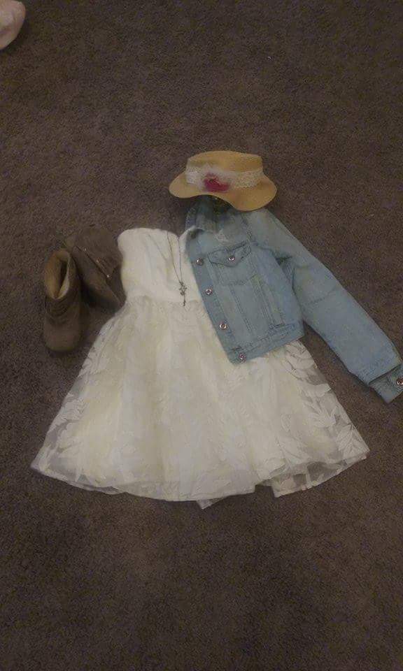 Even though I was born and raised a city girl, I still love my country music. This dress is a nice change from the typical plaid shirts you usually see at country music shows. I threw a light wash jean jacket over it for a layer, with a simple necklace, and red wedges to add some color. The second picture is the same dress and jean jacket with tan booties and a hat with a cute floral accent to change the look up a little bit.
